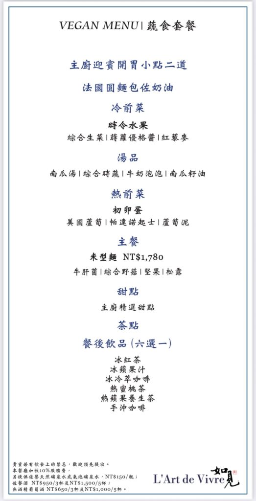 • 主廚套餐